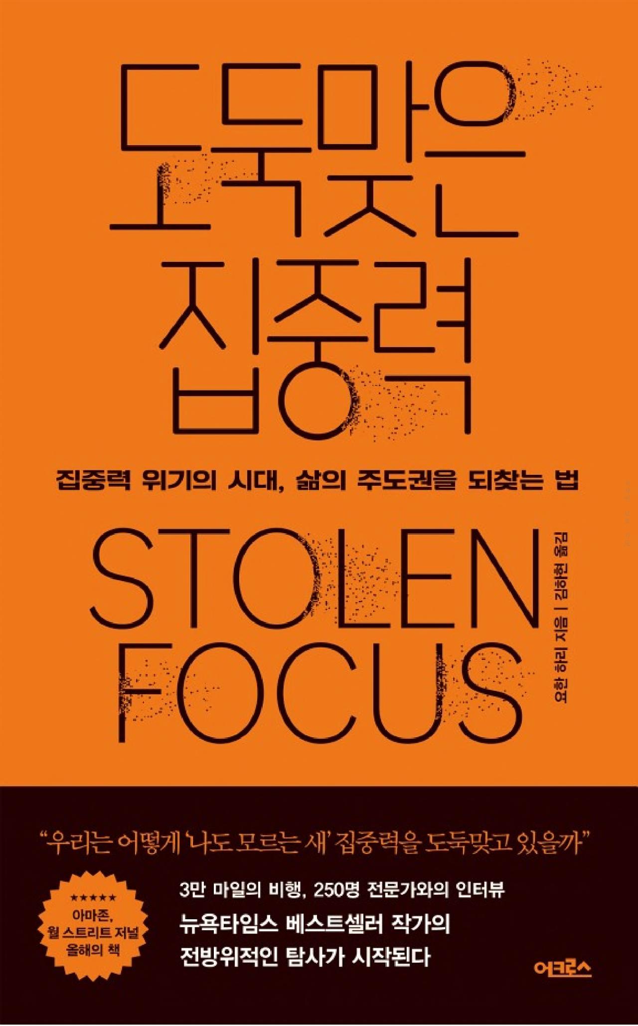 "도둑맞은 집중력"은 요한 하리가 쓴 책으로, 현대 사회에서 집중력의 상실에 대해 다룹니다.